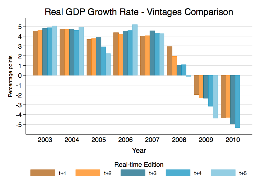 All the variables involved in the computation thus rely either on data directly provided by the borrowing country’s National Statistical Institute, like the previous year’s real GDP growth rate and nominal GDP, or forecasted using those data. Are these measures reliable? Could they be subject to misreporting? We try to answer these questions by using OECD real-time data vintages – whose sources are precisely the National Statistical Institutes – and check whether subsequent revisions cast doubts on the reliability of the data.